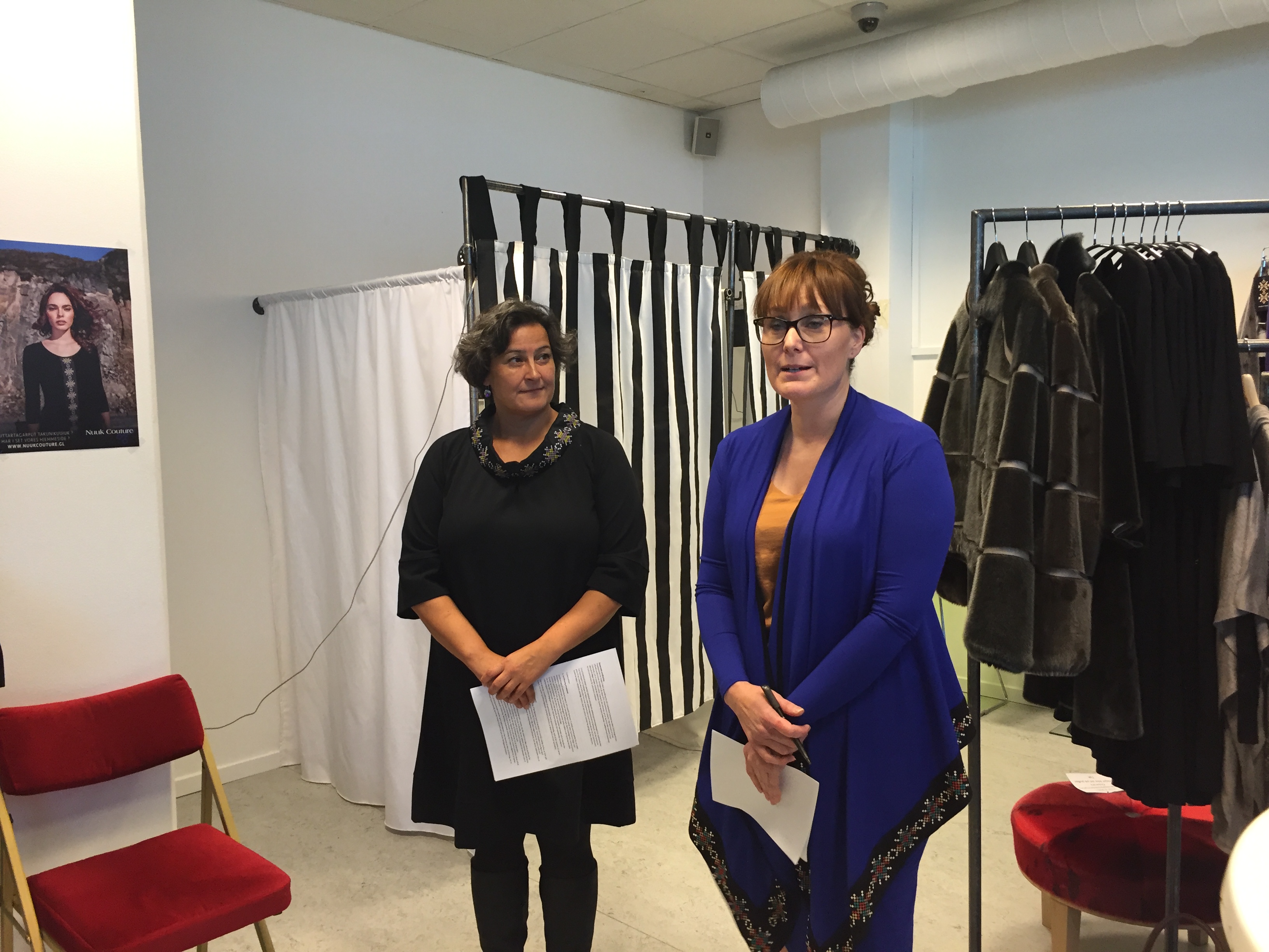 Louise Grace Lynge, design fortalte om idéen bag sit tøjdesign og hendes møde med Jeanette Holding, Grønlands første business angel