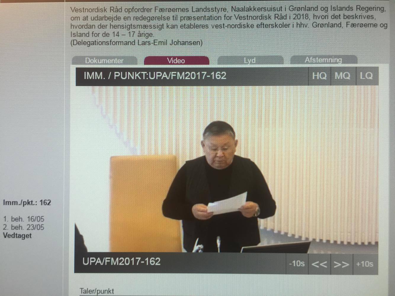Vestnordisk Råds 33.ordinære årsmøde i dagene 31.august – 1.september kan nu ses eller genses via Islands parlaments hjemmeside.