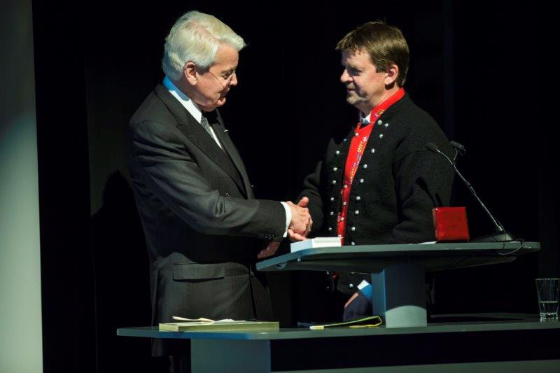 finall mynd (2) Formanden for Vestnordisk Råd, Bill Justinussen, ønsker Ólafur Ragnar Grimsson tillykke med æresbevisningen.