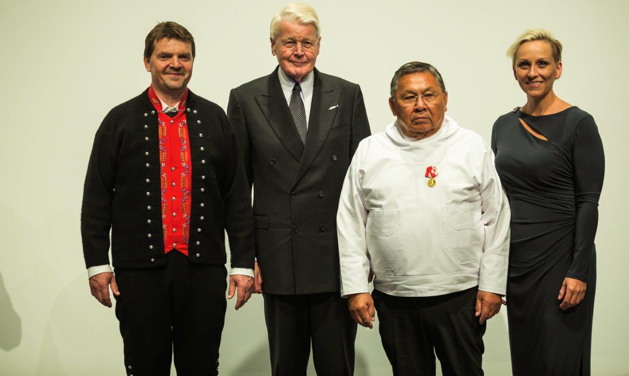 De tre medlemmer af præsidiet Bill Justinussen, Lars Emil Johansen og Unnur Brá Konráðsdóttir, sammen med Ólafur Ragnar Grimsson