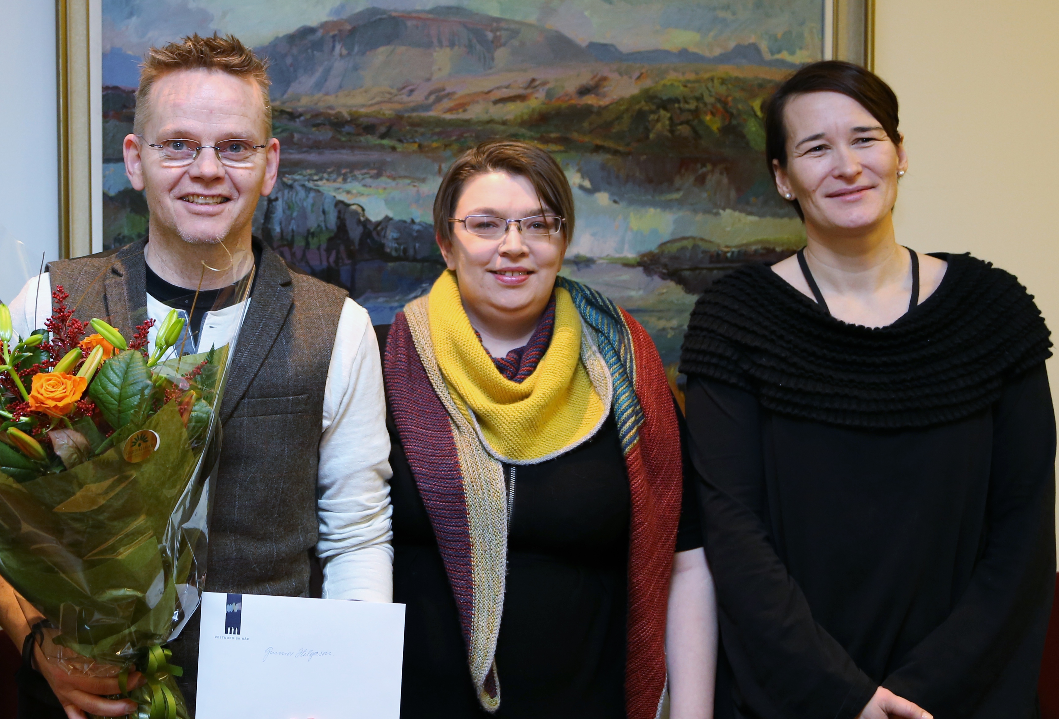 Gunnar Helgason forfatter, Hildur Ýr Ísberg formand for den islandske bedømmelsekomité og Inga Dora Markussen generalsekretær. Foto: Hildur Gróa Gunnarsdóttir