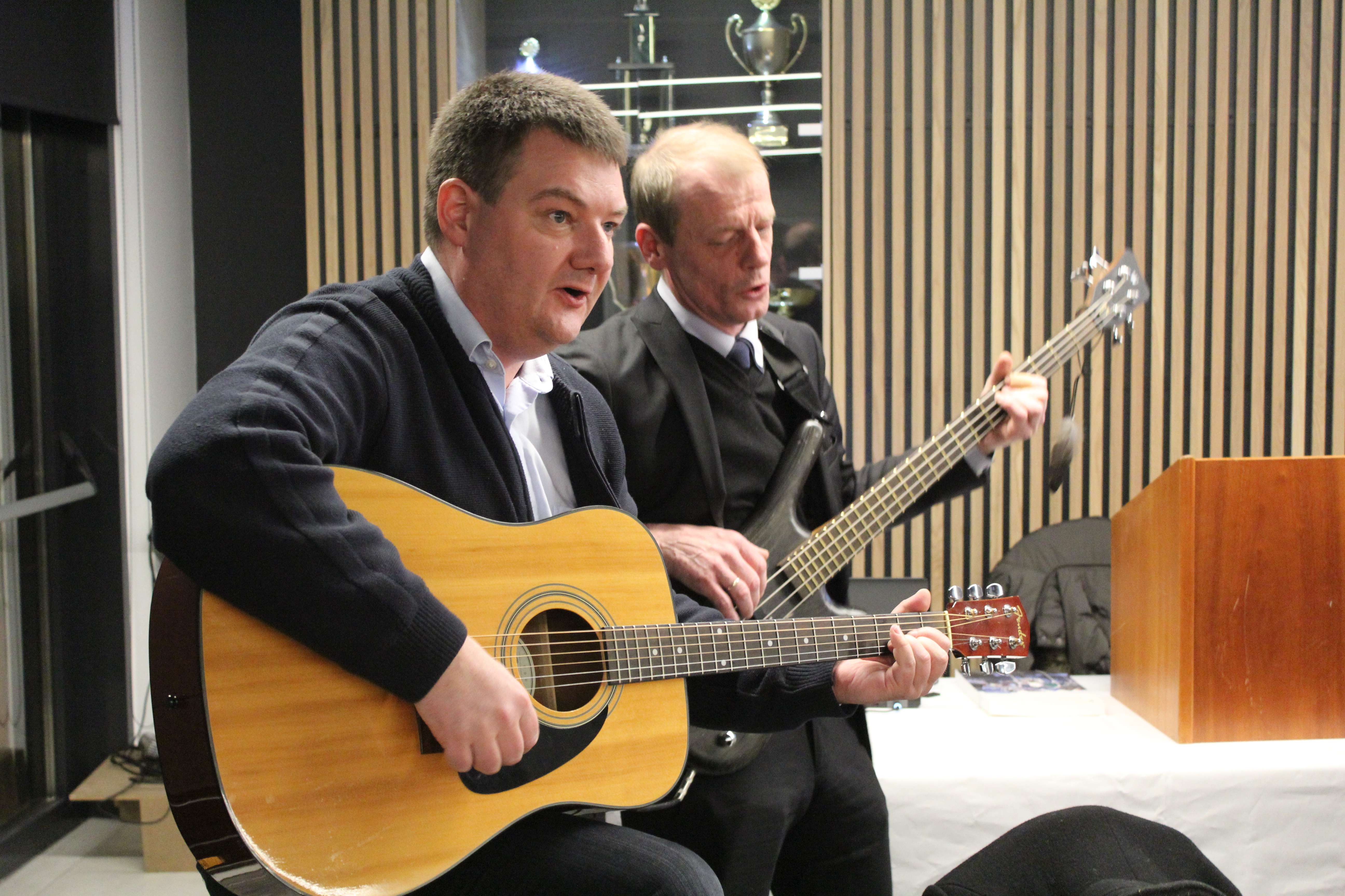 Magni Laksáfoss og Jørgen Niclasen fra den færøske delegation giver et nummer…