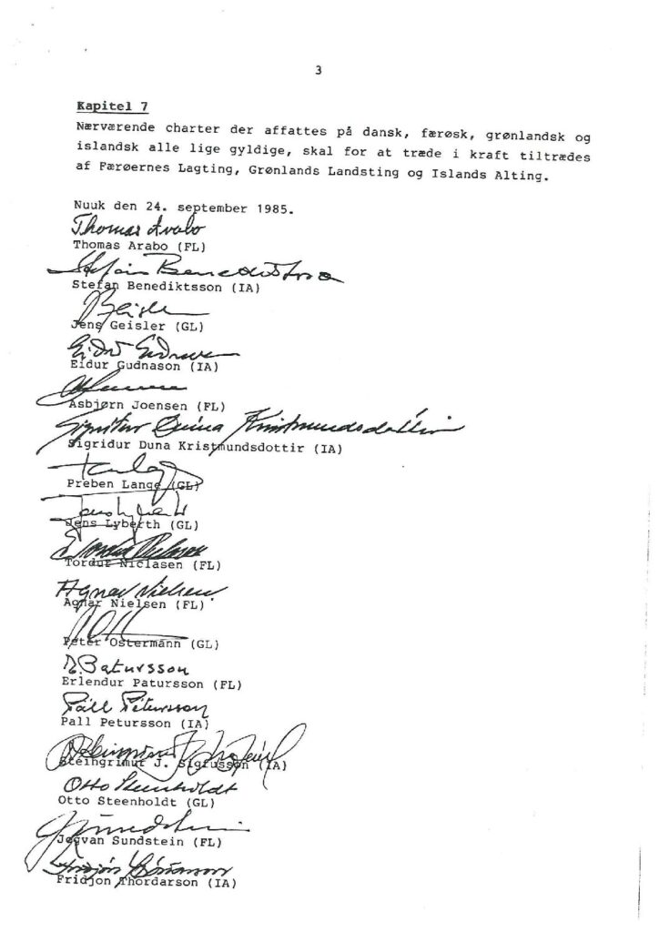 Undertegnede ønsker inderligt, at det vestnordiske samarbejde fortsætter med at vokse sig stærkere og blomstre. Der er ingen tvivl i mit sind om, at det vil gavne regionen som helhed, bidrage til at sikre indbyggernes interesser i en urolig verden og dyrke det, der er vigtigst for enhver nation: gode forbindelser, samarbejde og venskab med sine nærmeste naboer.