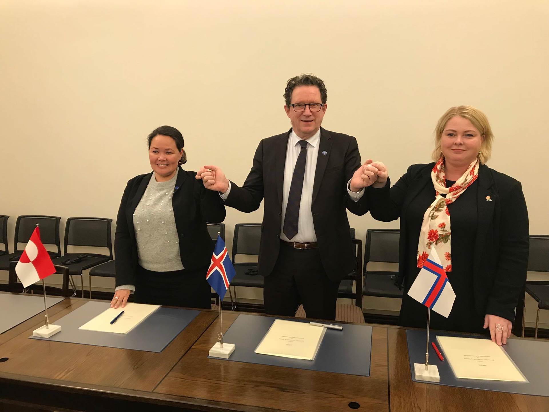 Under Nordisk Råds session i Helsinki der blev holdt i dagene 31.oktober- 2.november mødtes de tre tre vestnordiske undervisnings-, forsknings- og kulturministre, Rigmor Dam, Færøerne, Doris J. Jensen, Grønland, og Kristján Þór Júlíusson, Island, for at underskrive en samarbejdsaftale på kulturområdet i de vestnordiske lande.